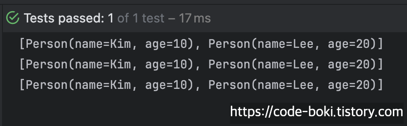 * 간단한 포스팅용 코드이므로, Assertion이 없다고 불편해하지 마시라!ㅠ. 학습용 테스트도 테스트의 일부일 수 있는것처럼