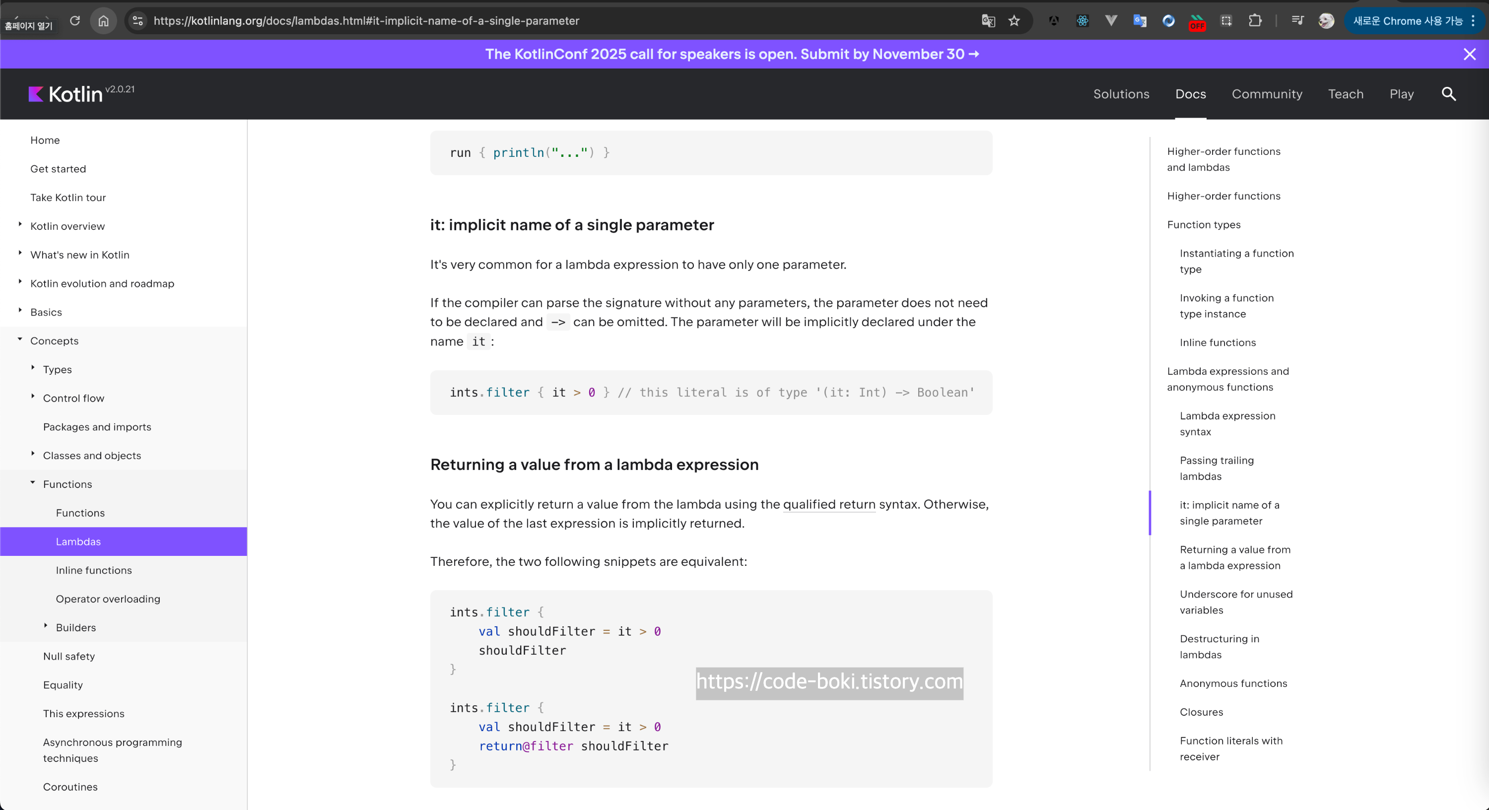2024년 11월 19일 기준 코틀린 최신버전인 2.021문서를 살펴보면 위의 내용이 나와있다