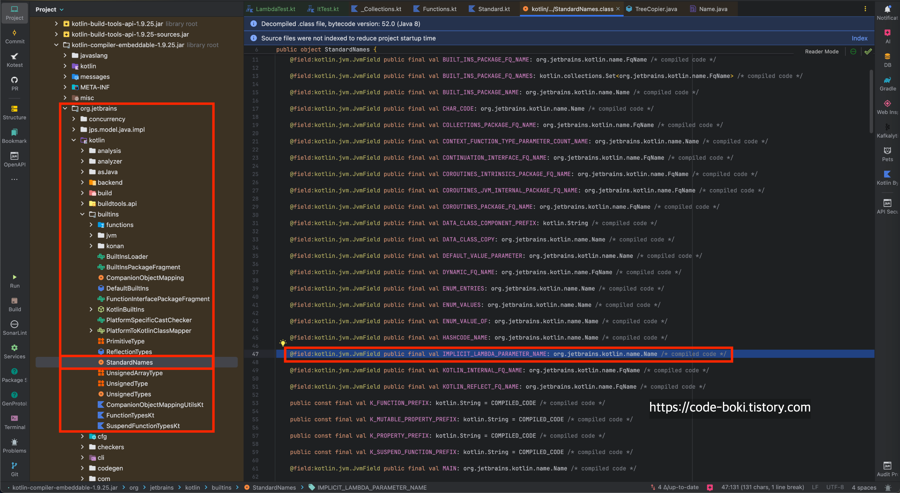 뭔가 컴파일러 내부에 있을 것 같아서, 사용중인 코틀린 프로젝트의 library에서 compiler 관련 파일들을 살펴봤다