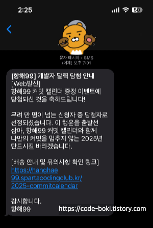 - 항해99 커밋 캘린더 증정 이벤트 당첨