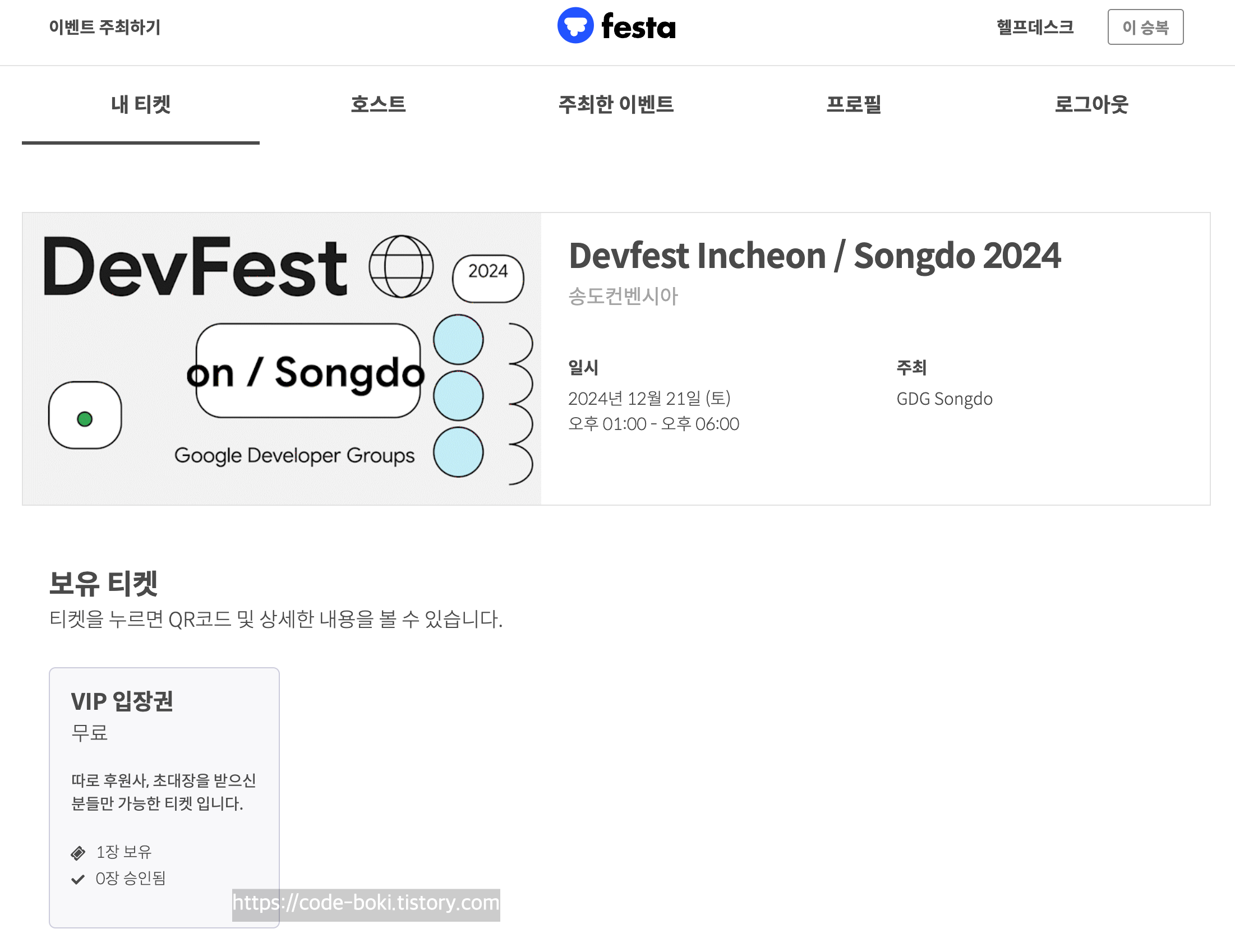 - 오쏘콘 행사 추첨 3등 당첨 -> Devfest 2024 Songdo VIP 티켓(2인)