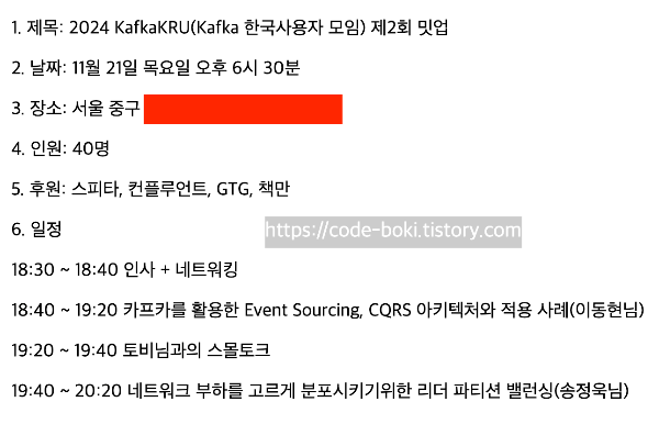 - 2024 KafkaKRU(Kafka 한국사용자 모임) 제2회 밋업 선착순 40인 당첨(feat. 고승범님 & 토비님)