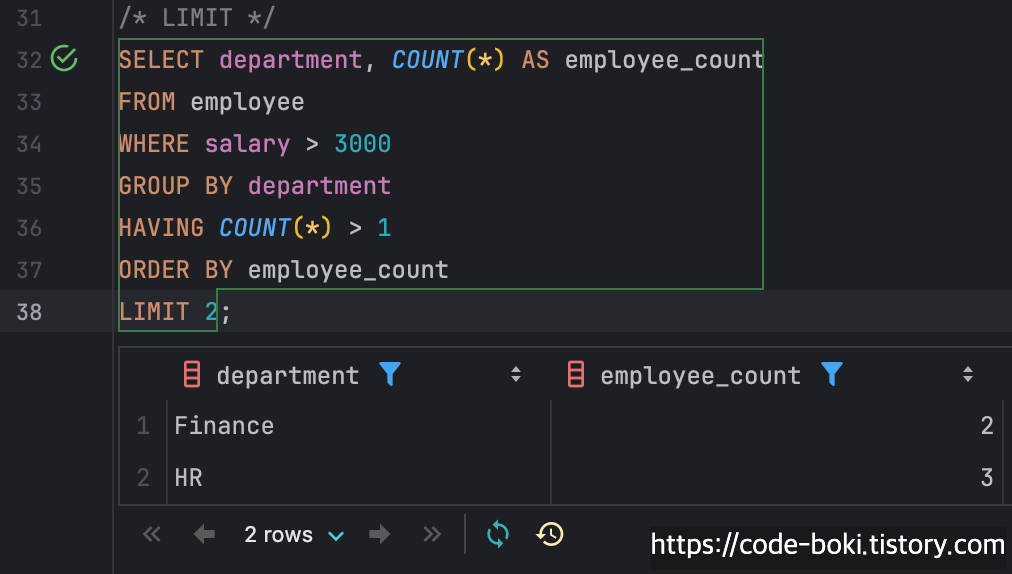 -> Sort: employee_count (actual time=0.558..0.558 rows=2 loops=1)