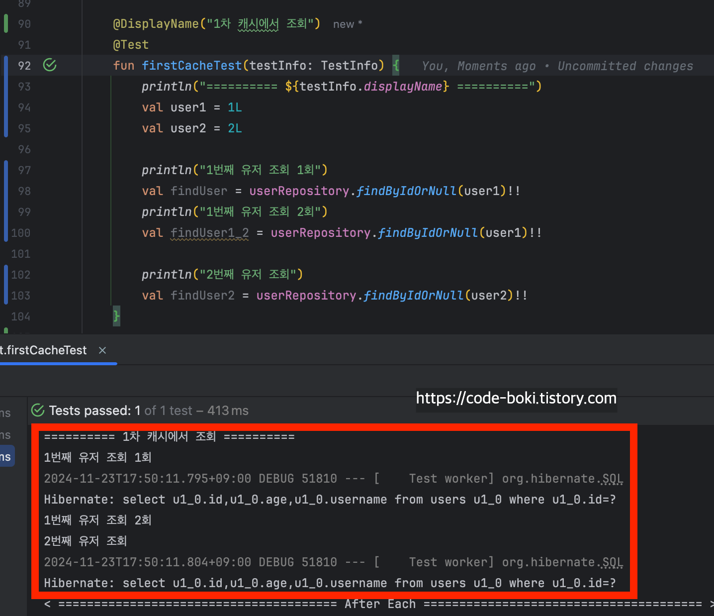 단점들에 대해서 관련된 다음 포스팅에서 직접 알아볼 예정이지만.. 이번 포스팅에서는 1차 캐시의 장점 + 단점/주의점(4번 과정)을 눈으로 확인해보겠다