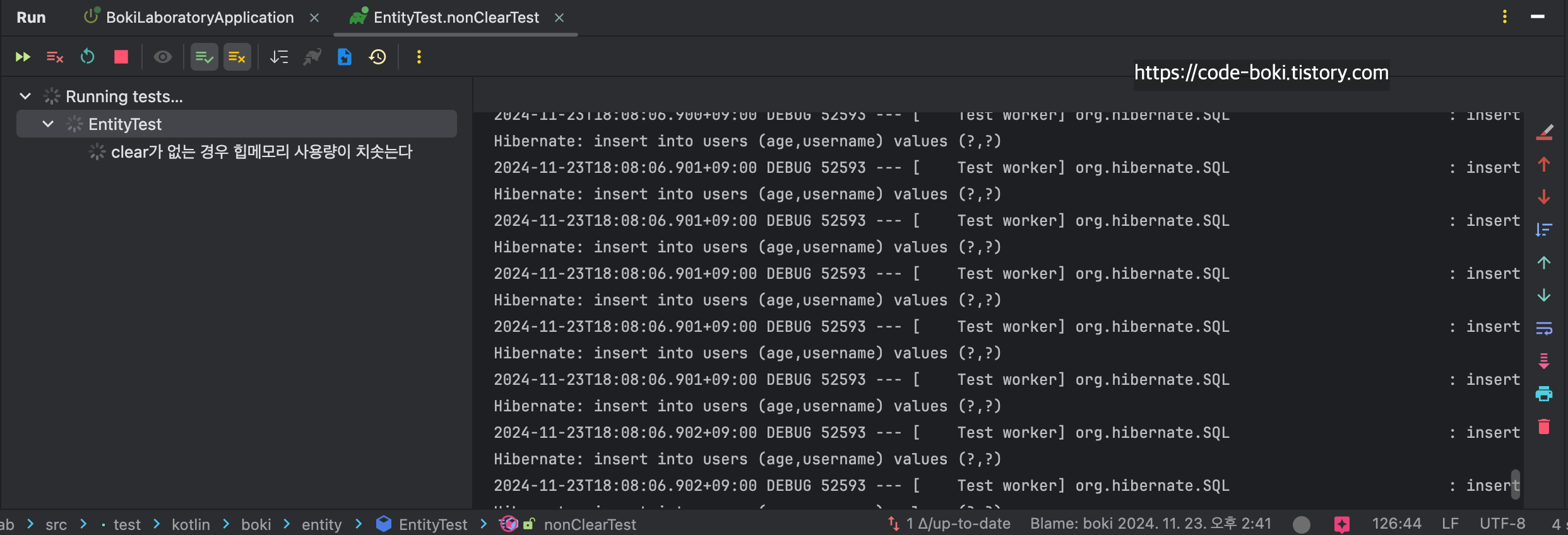 참고로 테스트코드는 IntelliJ가 아닌 Gradle로 실행했다