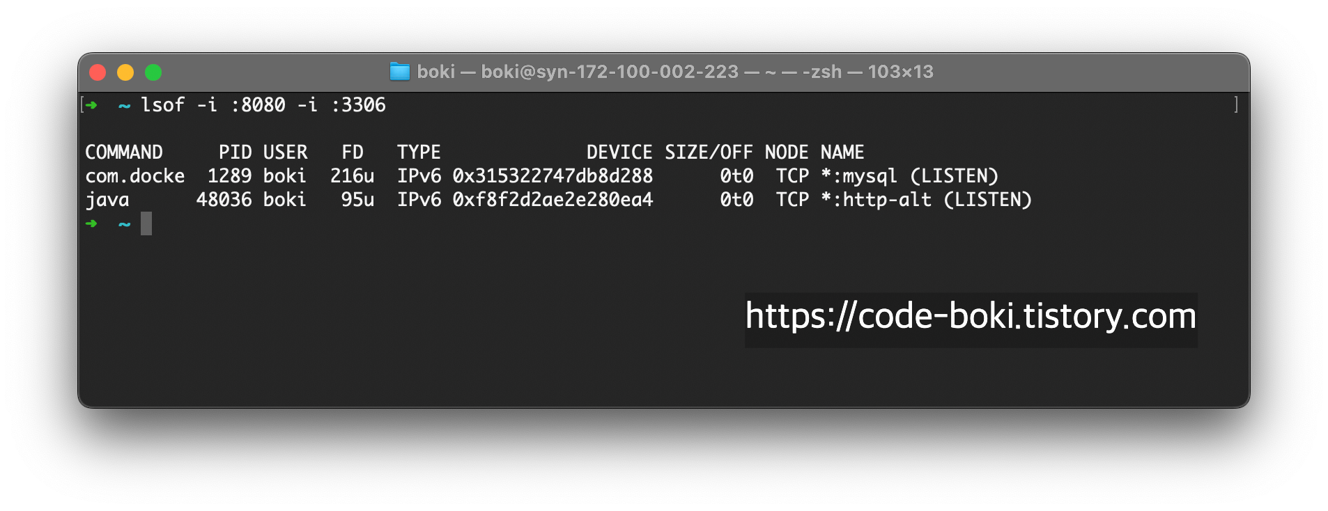 => Spring Application(:8080)과 MySQL in Docker(:3306)이 다른 PID를 갖고 떠있는 상태