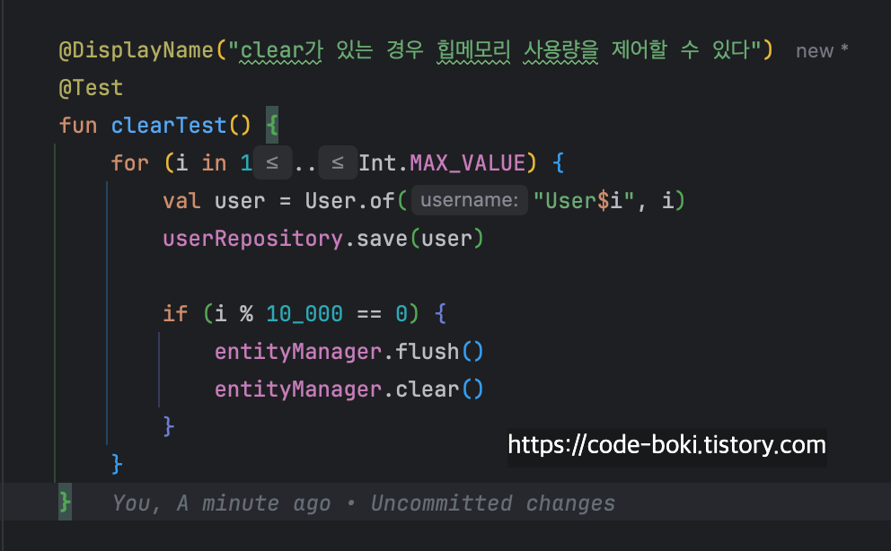 4. 부하가 많은 작업을 JPA를 사용할 경우 EntityManager.clear()를 통해 영속성 캐시를 주기적으로 비워줘야 Heap 메모리에 부하가 줄어들어서 OOM이 발생하지 않게 된다
