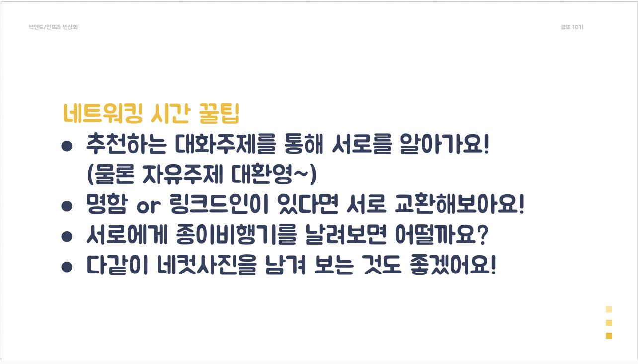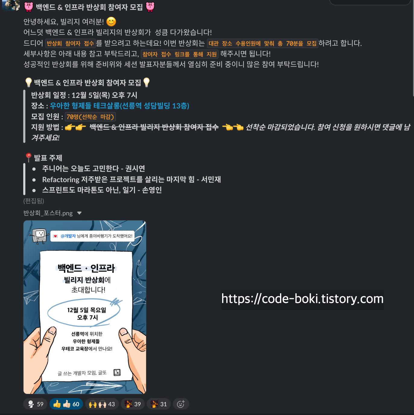 꽤 지났지만.... 12월 5일에 참여했었던 글또 10기의 백엔드&인프라 빌리지 반상회에 참여했던 후기를 이제 올려본다ㅎ