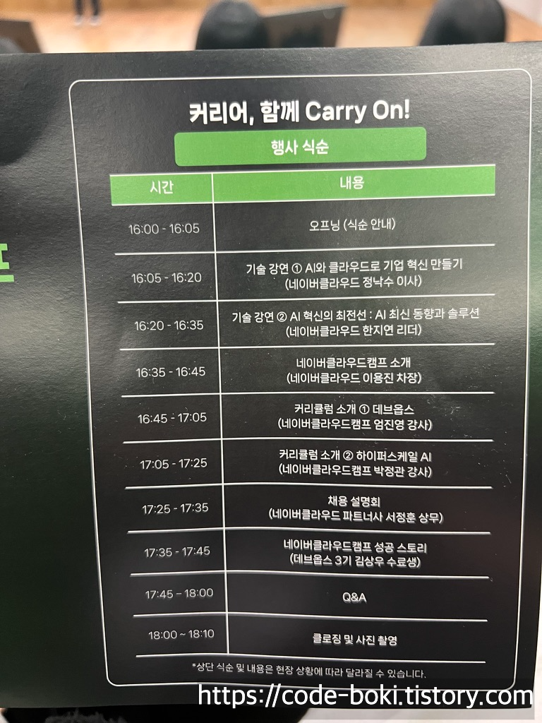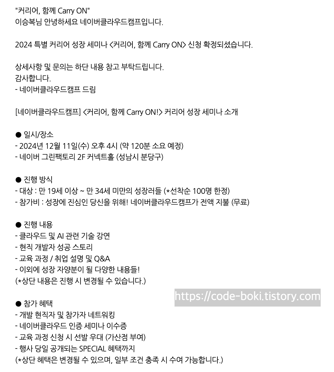 유명한 다른 교육기관도 있지만 네이버에서 네부캠 말고 클라우드캠프에서 이런 행사를 열어서 신청했다