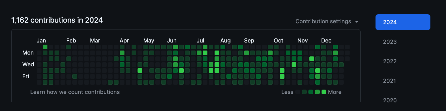 나름대로 체화하고 정리도 하고 복습도 열심히 했다.. 위에는 개인깃헙인데 회사계정 깃헙도 살아있었다면 합쳐서 3000개는 넘겼다ㅠ