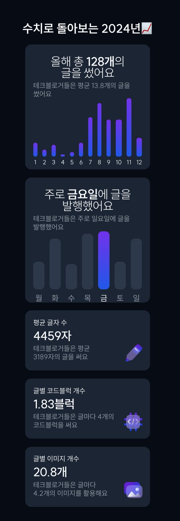 글자수나 이미지는 평균을 넘지만 코드블럭이 적은건...ㅎ 반성해야겠다 헷