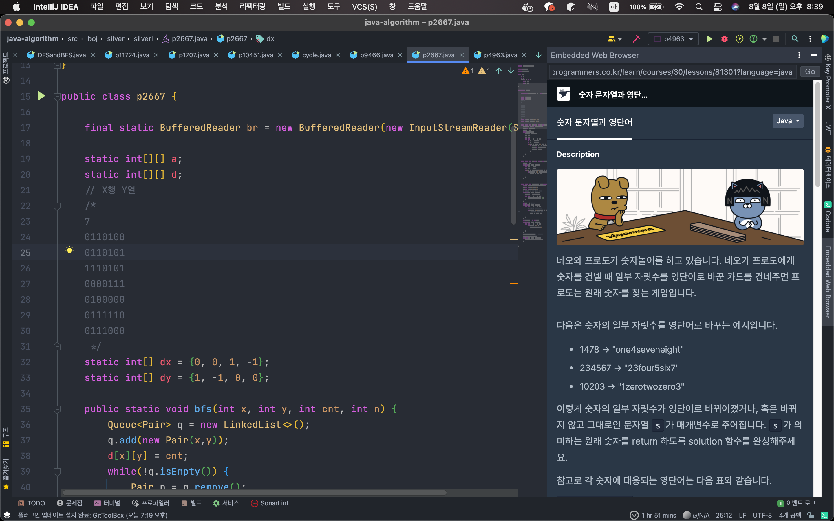 보이시나요!? 왼쪽에 코드 치는 부분과 별개로 우측에 문제 부분이 나온것을...