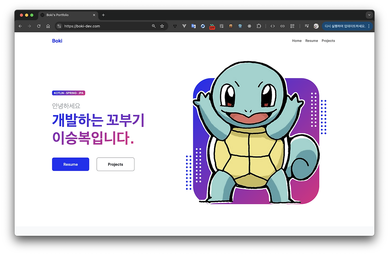 결국 완성한 귀여운 프로젝트 ㅎㅎ 궁금하신 분들은 https://boki-dev.com/로 접속하면 볼 수 있다.