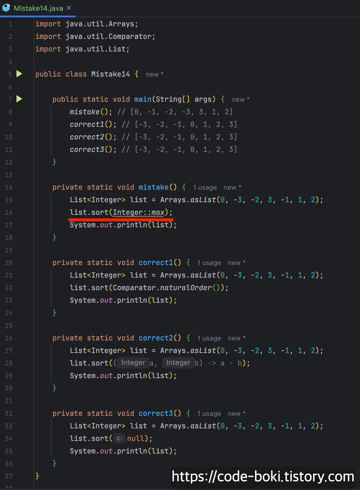 실제로 Mistake 14 코드를 보면