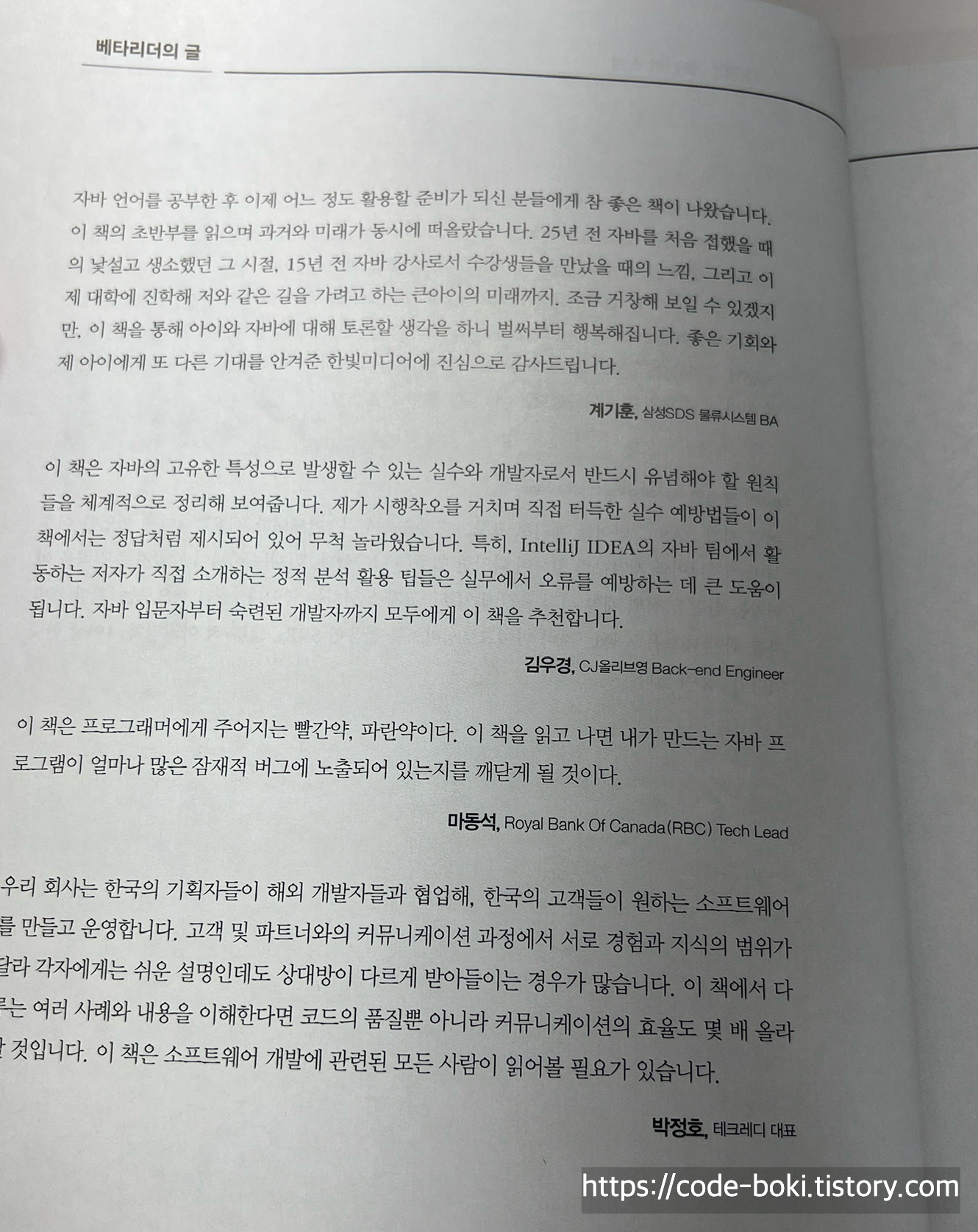 - 제목: 자바 코드의 품질을 높이는 100가지 방법 - 자바 베테랑이 전하는 실전 오류 패턴과 해법