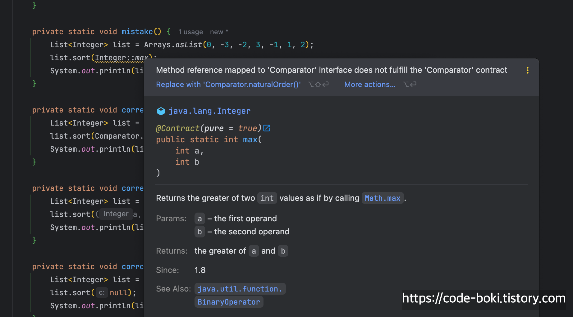 정적 도구가 내장된 IntelliJ IDEA에서는 노란색으로 warning을 해주는 모습을 볼 수 있다.