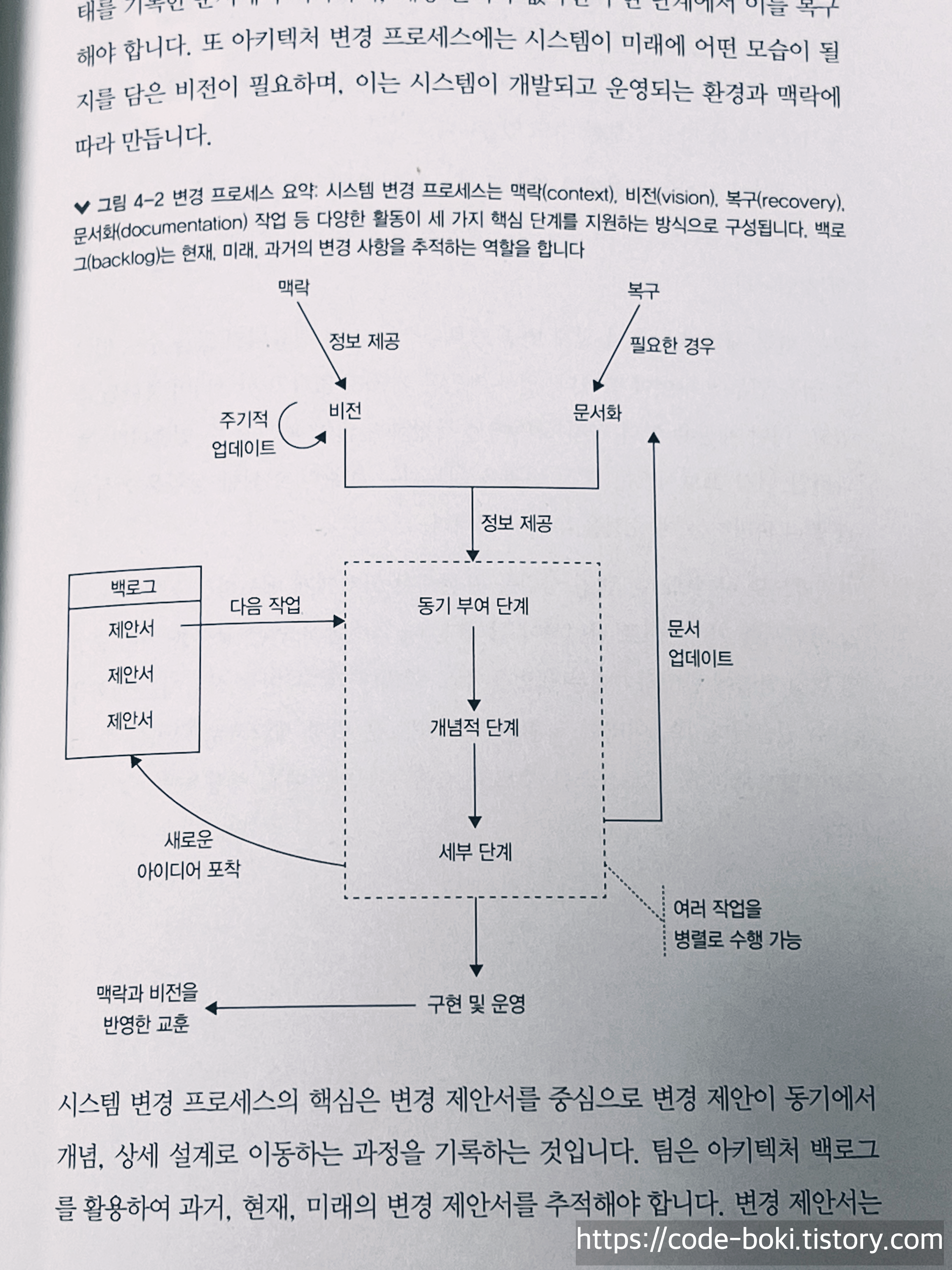 이후에 점진적 접근, 병렬처리, 조직 구조, 개방적인 작업, 포기, 완료 등에 대한 설계과정에 대해 간적접인 텍스트로 저자의 경험을 들어볼 수 있었습니다.