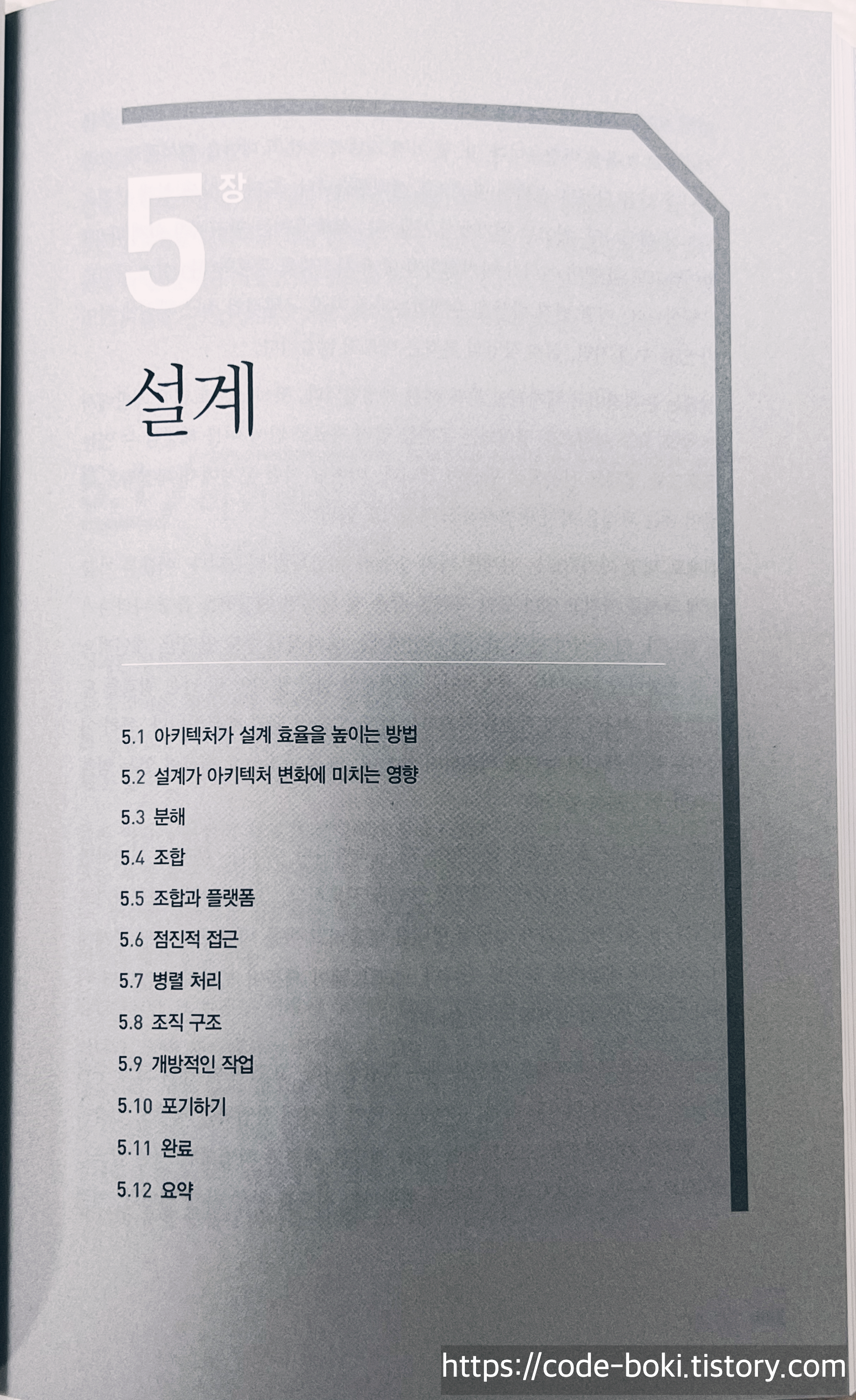 5장 설계가 가장 소제목이 많았습니다. 그도 그럴것이 아키텍처==설계에 근사하기 때문입니다.