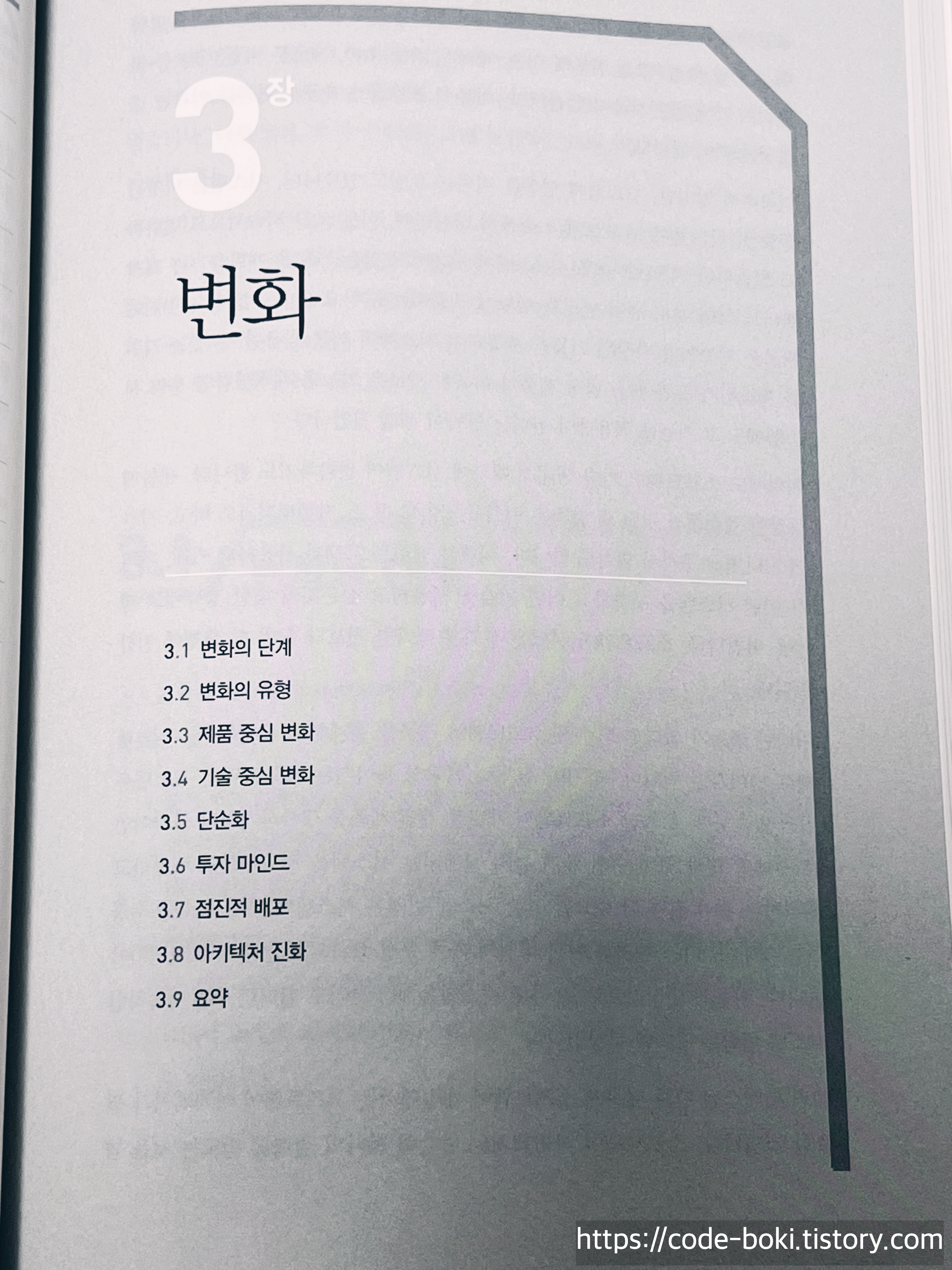 소프트웨어는 어떻게 될까요? 하드웨어는? 모든 것은 변화합니다. 마인드나 배포, 아키텍처 또한 말이죠! 그 과정을 3장에서 다루고 있습니다.
