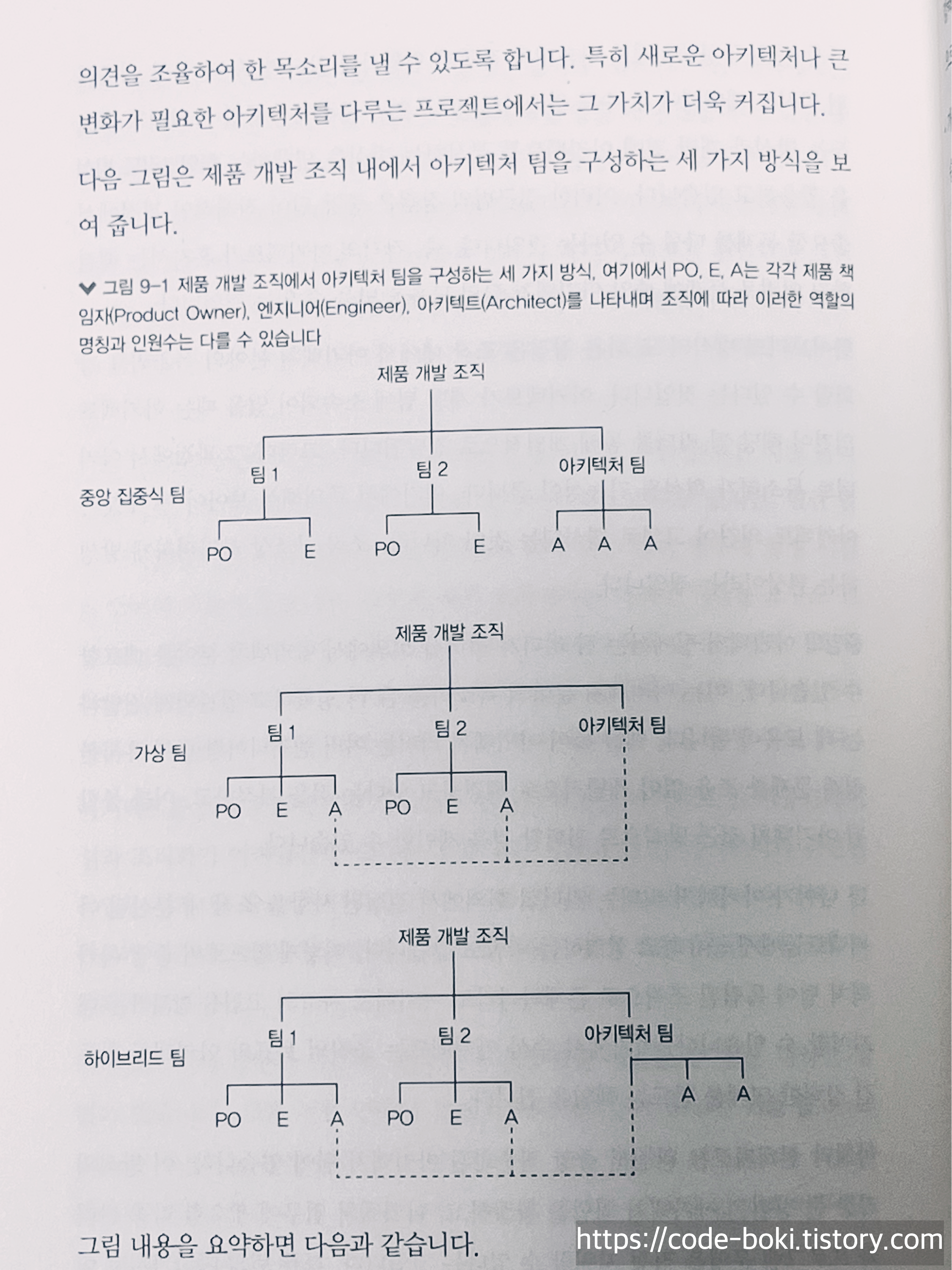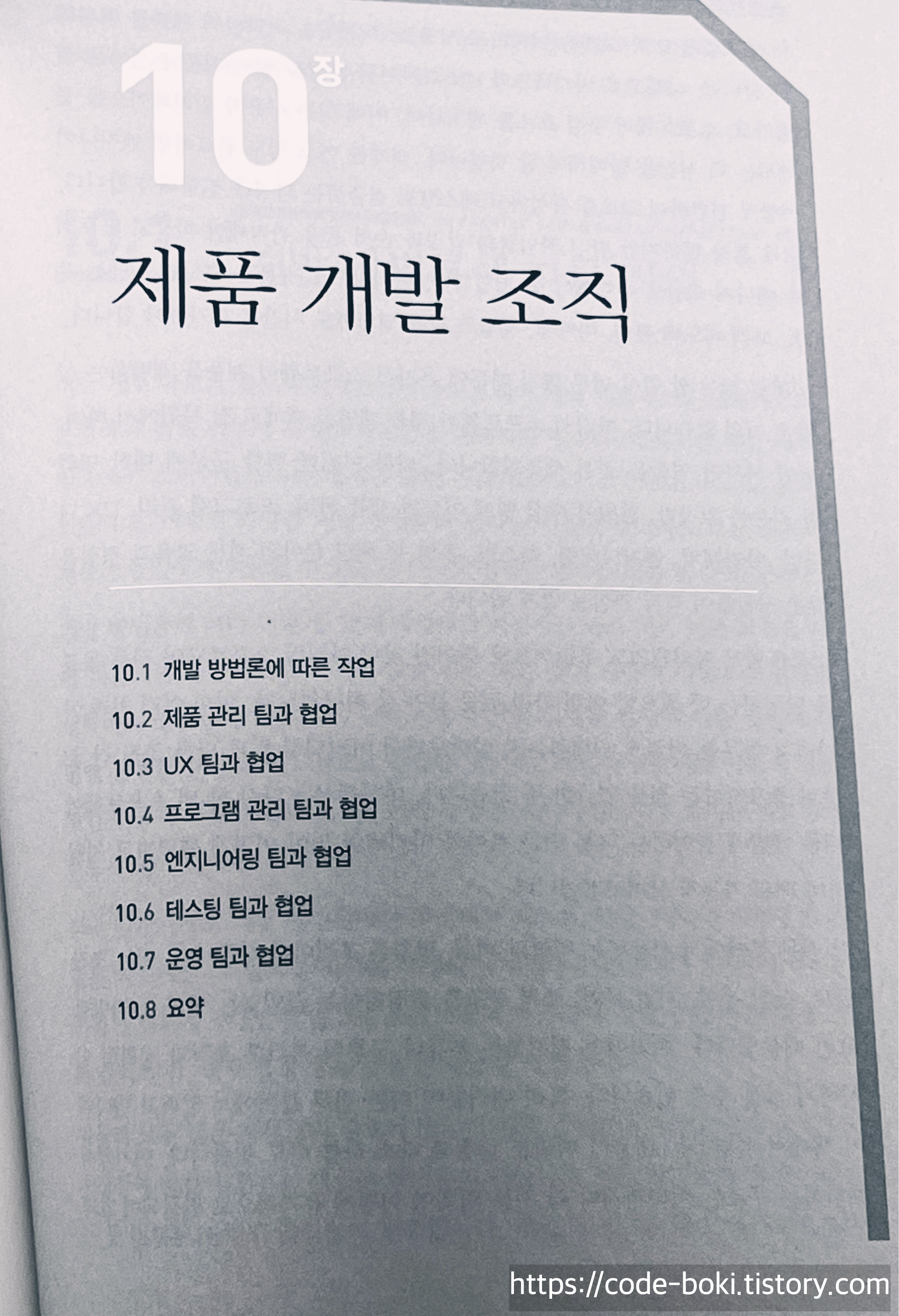 8장에서는 커뮤니케이션을, 9장에서는 아키텍처 팀을, 10장에서는 제품 개발 조직에 대해 다룹니다.