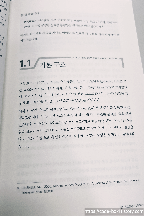 그리고 이 책은 1장부터 소프트웨어 설계란 무엇인가, IEEE 표준, 아키텍처의 정의를 소개하며 시작합니다.