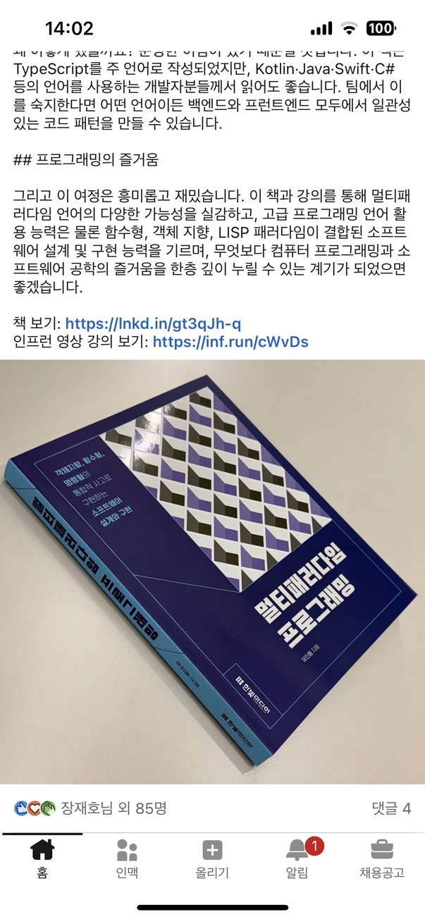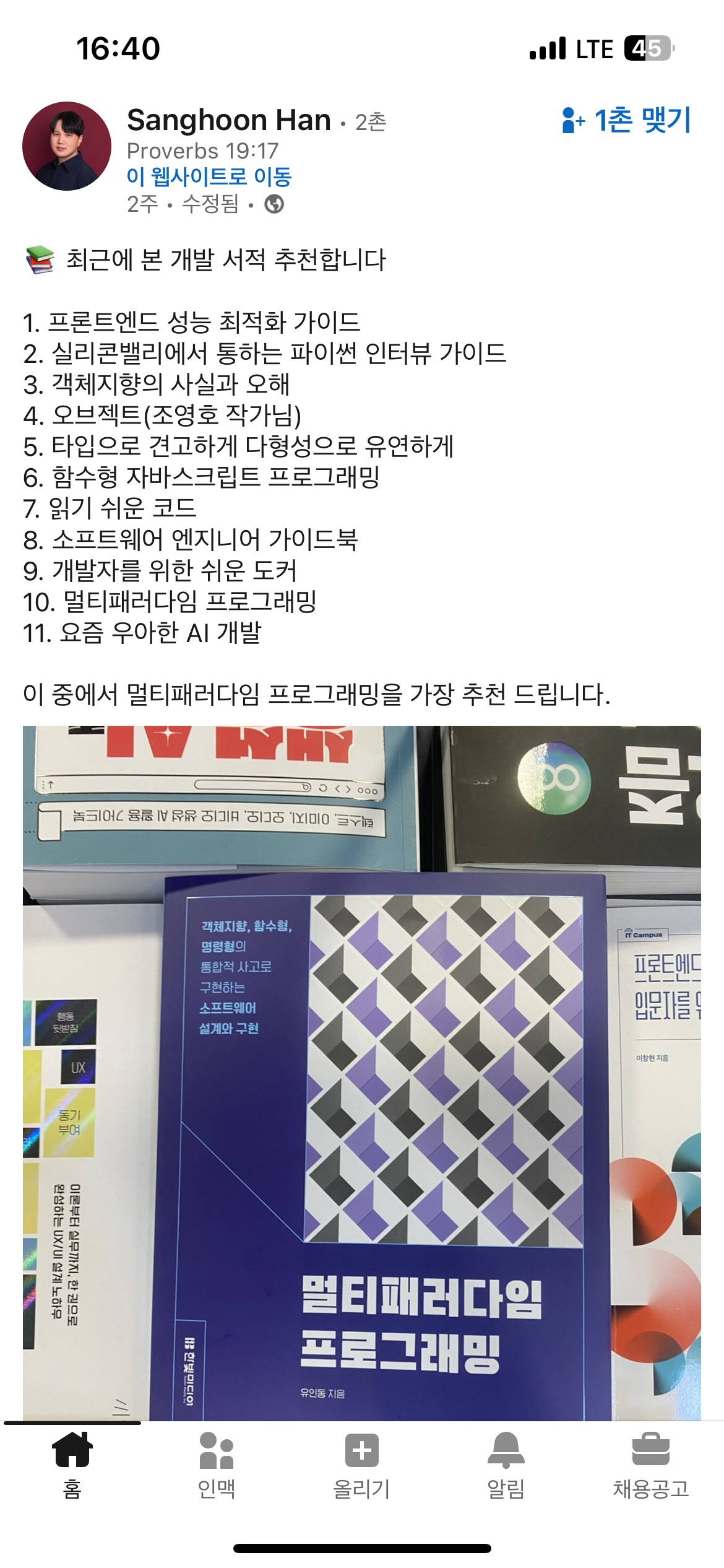 그리고 다른 분의 이 책을 극찬하는 포스팅도 봤다.