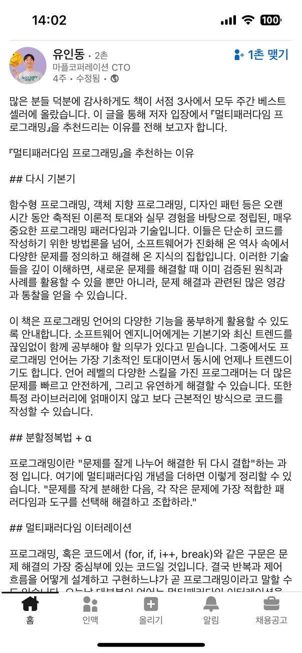 그리고 다른 분의 이 책을 극찬하는 포스팅도 봤다.