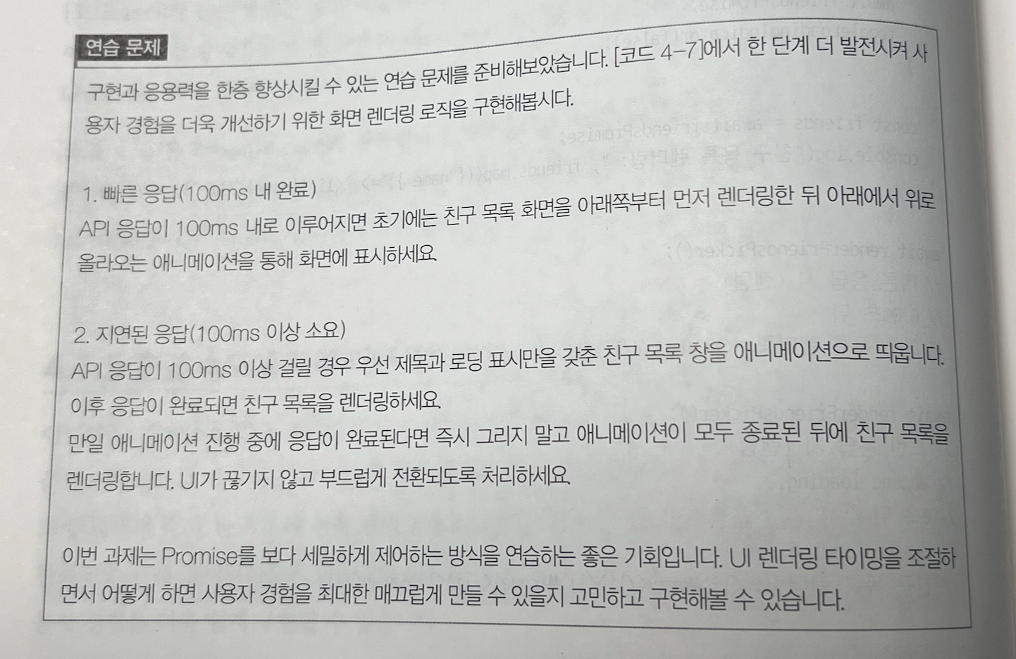 제공되는 설명과 코드에 지쳐있는 당신을 위한 연습 문제도 있다. FE개발자라면 꼭 도전해보기!