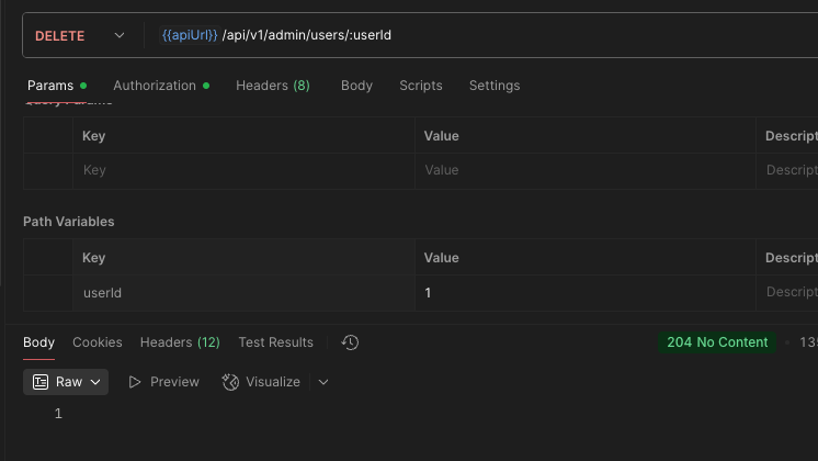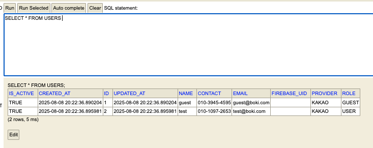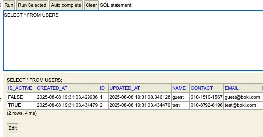 API 응답도 잘 왔고, 로컬환경이라 h2에서 본 결과도 목표로 한 1번 id를 가진 유저만 비활성화되었다.