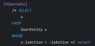 @Query("SELECT u FROM UserEntity u WHERE u.isActive = :isActive")