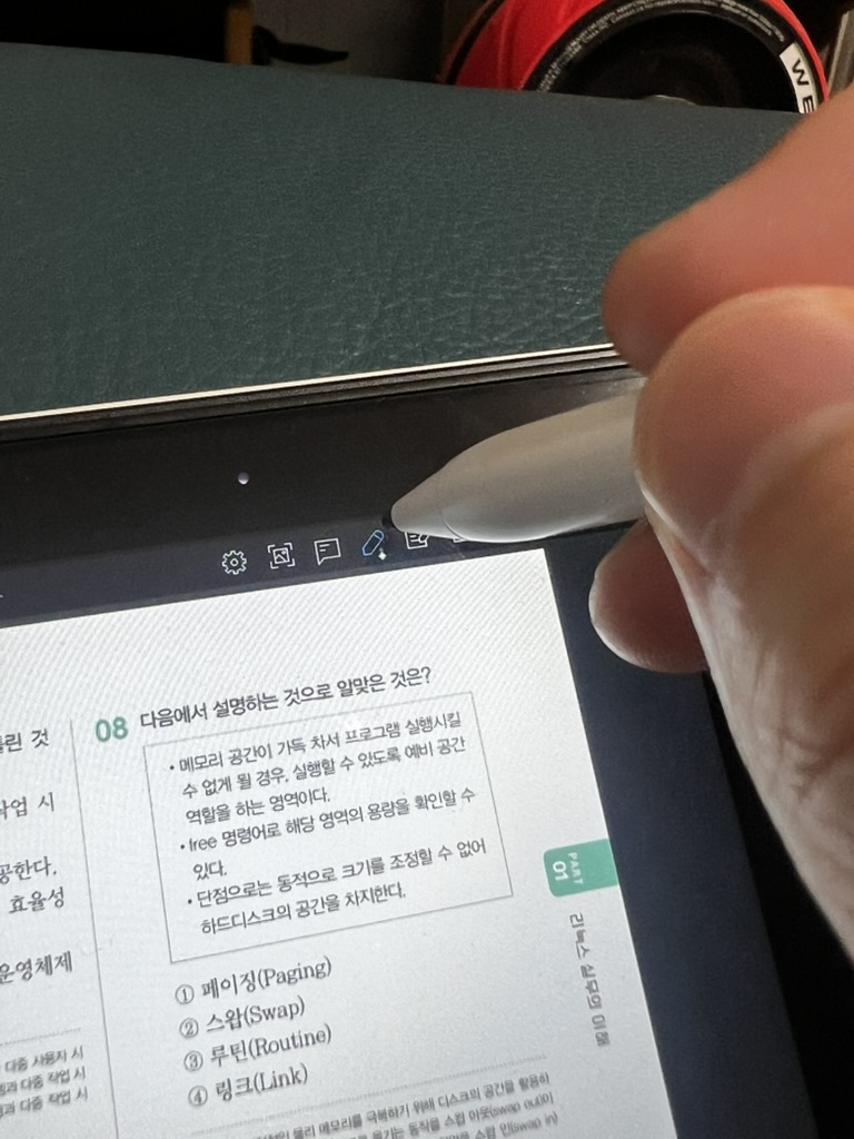 노트북에서 키보드를 제거하고 스타일러스 펜과 함께 밑줄을 쳐가면서 외우다가 문제 풀이 화면에서 번호 선택을 해가면서 문제 풀이도 진행했다.