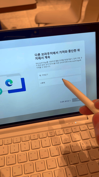 윈도우11 초기화 설정을 진행하는 과정과 함께... 옆에서 쉬고 있던 펜이 잘 사용되는지 궁금해서 한 번의 클릭으로 전원을 켜준 다음에 화면에 톡톡 두드려봤다. (신기했고, 처음 써보는 거라 살살 누른다고 화면을 꾹 안 누른 건 안 비밀)