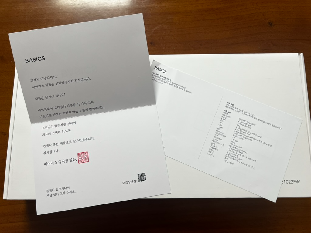 택배 상자를 뜯으니 이런 이쁘고 하얀 베이직북S 상자가 날 반겨줬다.