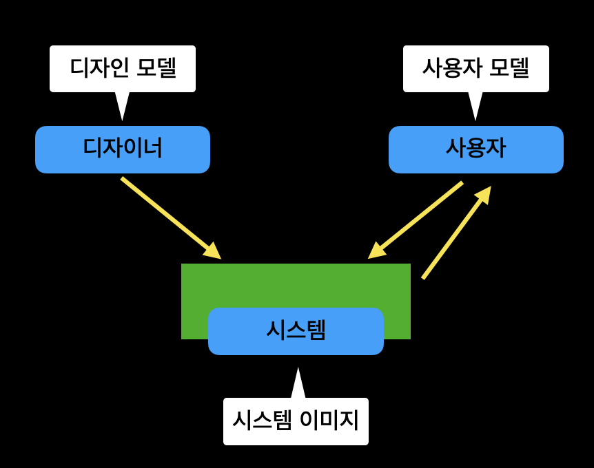 사용자의 모델과 디자인 모델이 동일하다면 이상적이겠지만 사용자와 설게자는 직접적으로 상호작용할 수 없으며 단지 최종 제품인 시스템 그 자체를 통해서만 의사소통할 수 있다. 따라서 설게자는 디자인 모델을 기반으로 만든 시스템 이미지가 사용자 모델을 정확하게 반영하도록 노력해야 한다.