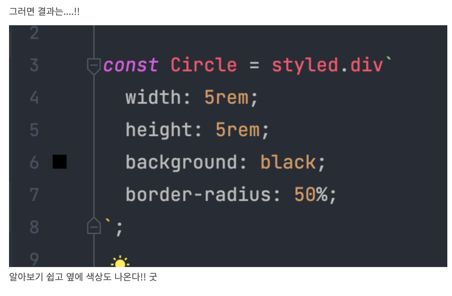 InetlliJ나 WebStrom으로 개발할때 Styled-component를 설치하면 아래처럼 색깔이 입혀지지 않아서 나온다 어디까지가 속성(attribute)이고 어느게 value인지 확 와닿지 않는다..!! 그럴때는 이 플러그인을 설