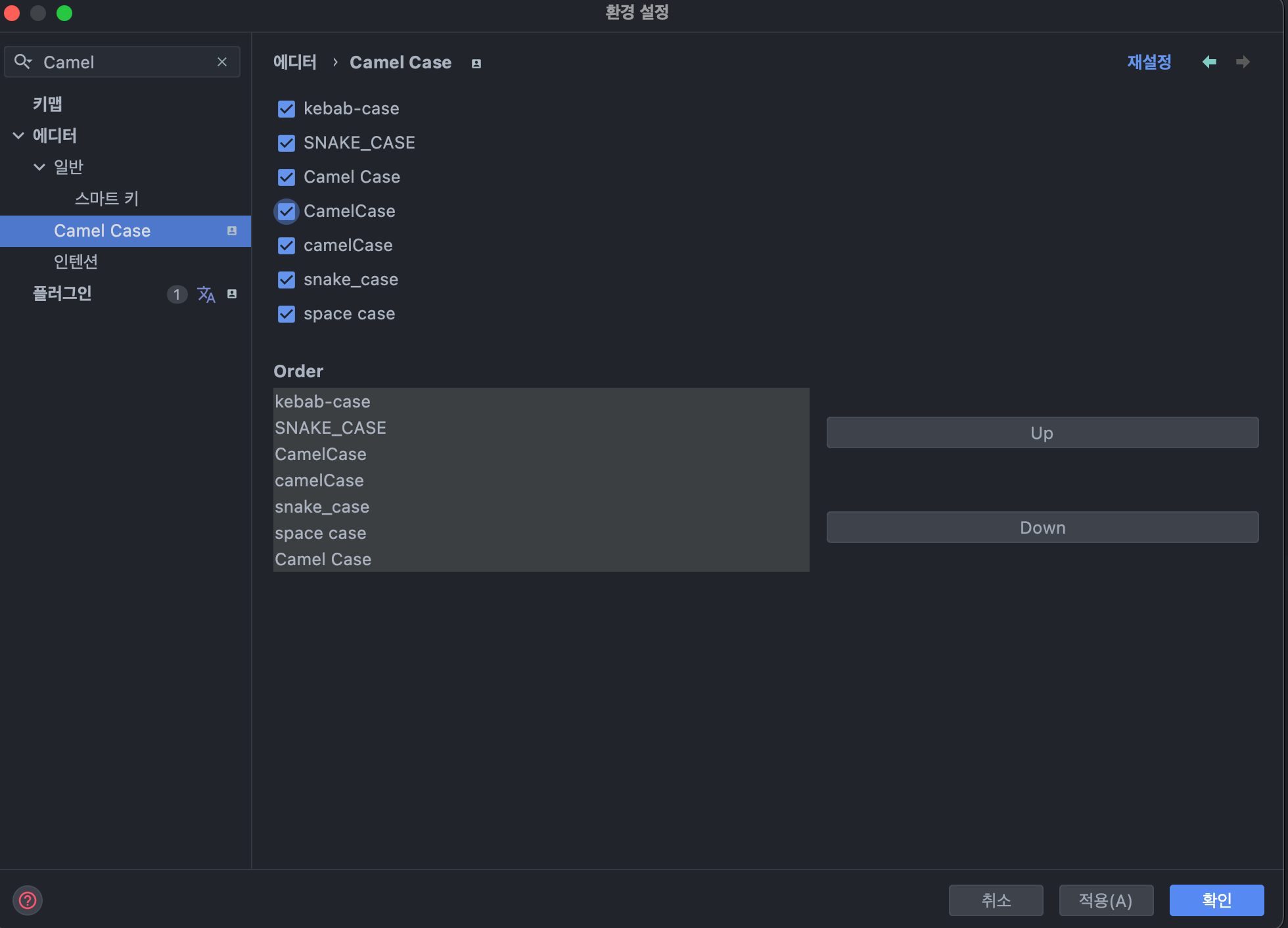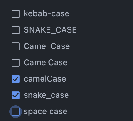 하지만 자바형태의 카멜케이스는 첫글자는 소문자여야 하고, DB단에서의 레코드명은 규칙적으로 소문자_소문자이기때문에 필요한 애들 2개만 체크를 해주자
