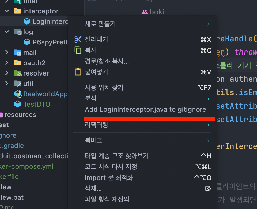 - .ignore 또는 Add to gitignore (필)