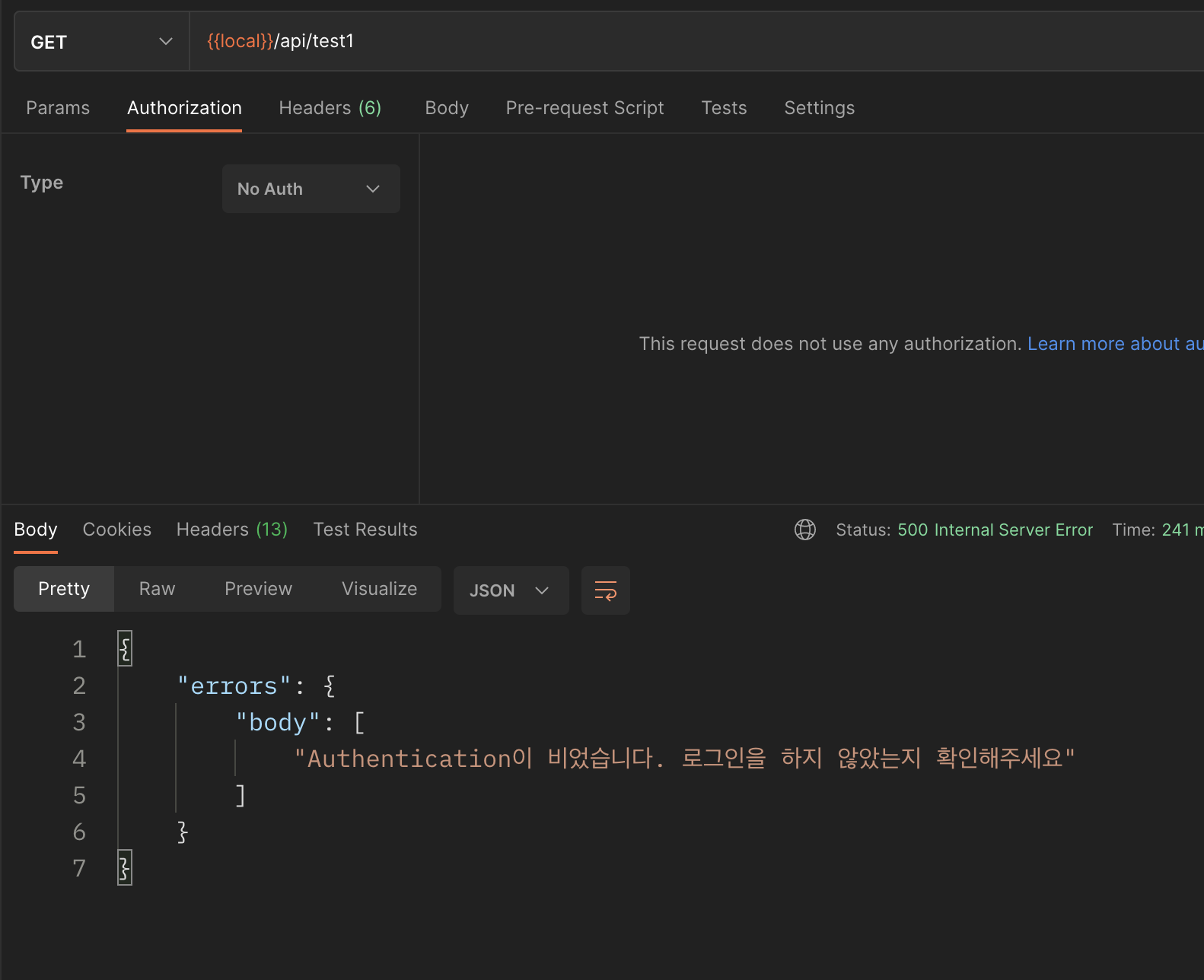 이번에는 No Auth로 api를 호출해보겠다