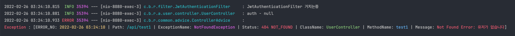 이제 로컬에서 에러 로깅을 해보면