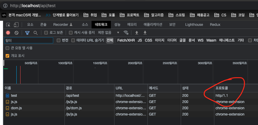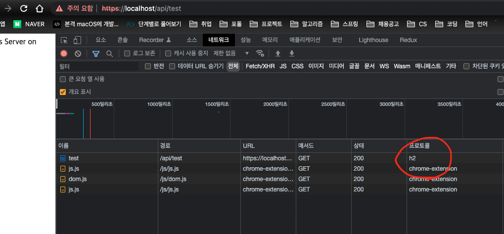 HTTPS 를 HTTP/1.1로 통신하는 것을 볼 수 있다