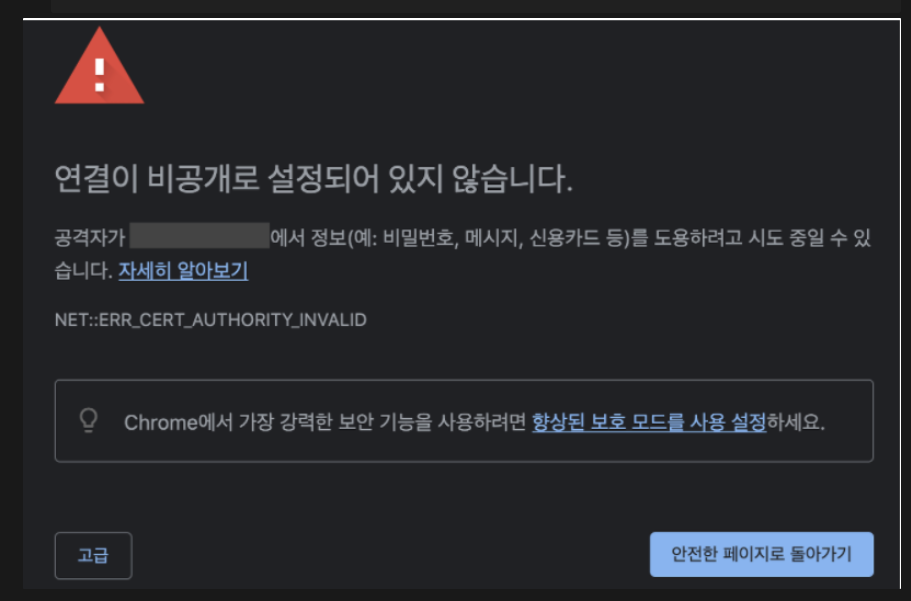 이런게 떴을때 고급에서 신뢰하지 않지만 계속 접속 뭐 이런 문구조차도 안보이는 경우가 있다(내가그럼)