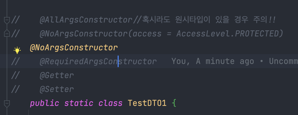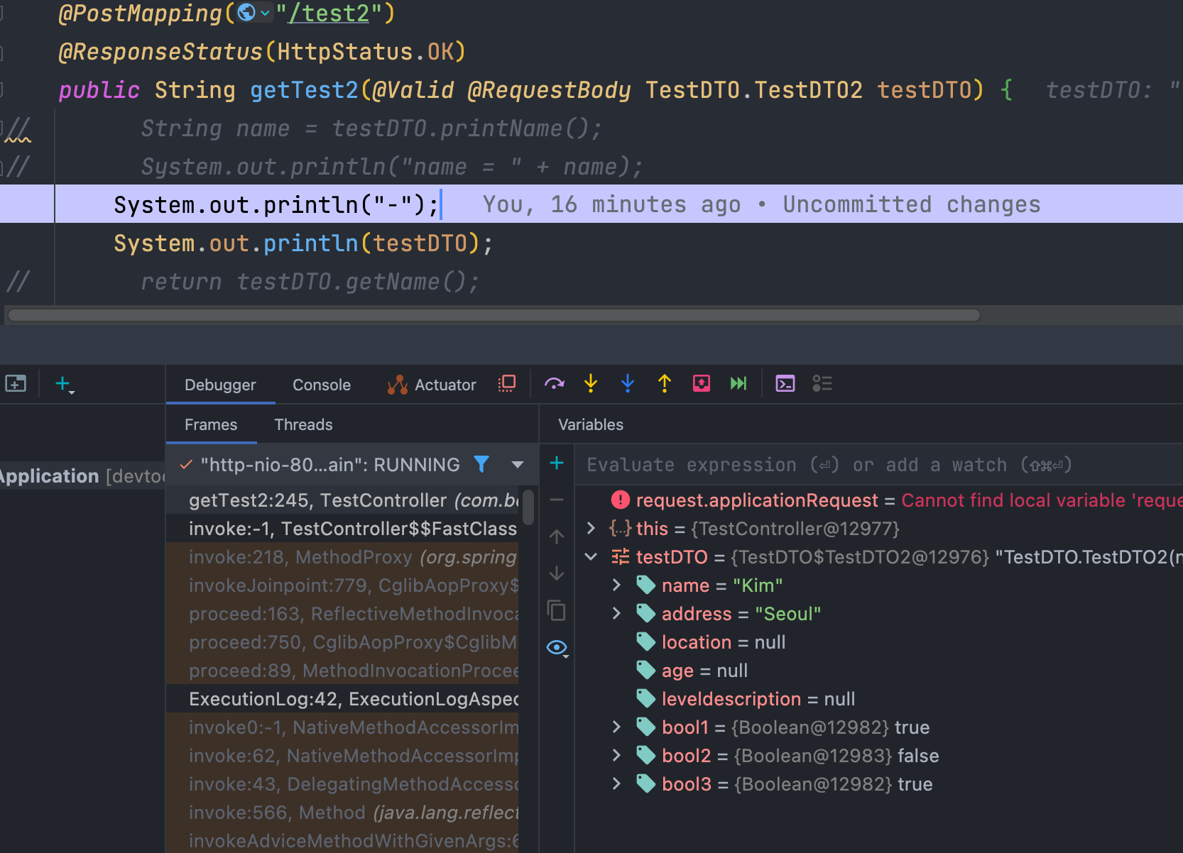 자, 그렇기때문에 혹시라도 DTO필드값을 참조타입이 아니라 원시타입으로 한 경우는 에러가 날것이라고 예상을 할 수 있다