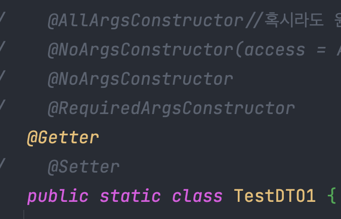 결론: 생성자 혹은 Set 메서드로 DTO가 인스턴스화 된다. 생성자는 기본 생성자 하나만 있어도 된다.