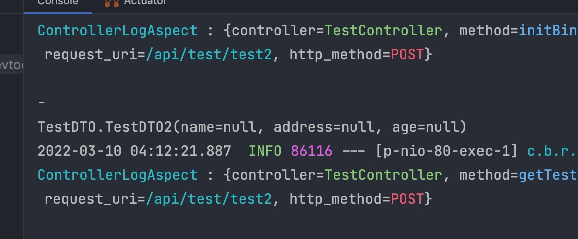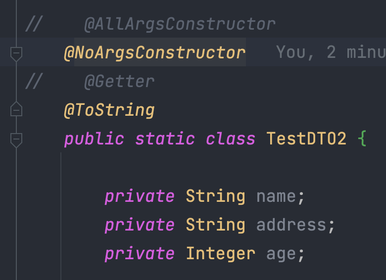위에 @NoArgsConstructor처럼 address만 받는게 아니라, name이나 age를 받는 것을 확인 할 수 있었다