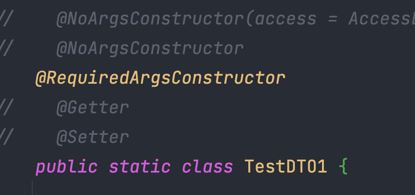 하지만 실제 동작은 조금 다르다. final이나 @NonNull이 붙은 필드의 파라미터를 가진 생성자를 만들어주는것은 맞으나, @NonNull일때는 값이 비어진 생성자가 생성되지 않는다. @NonNull대신 final을 붙이면서 생성자를 만든다면 생략할 수 있게 된다.