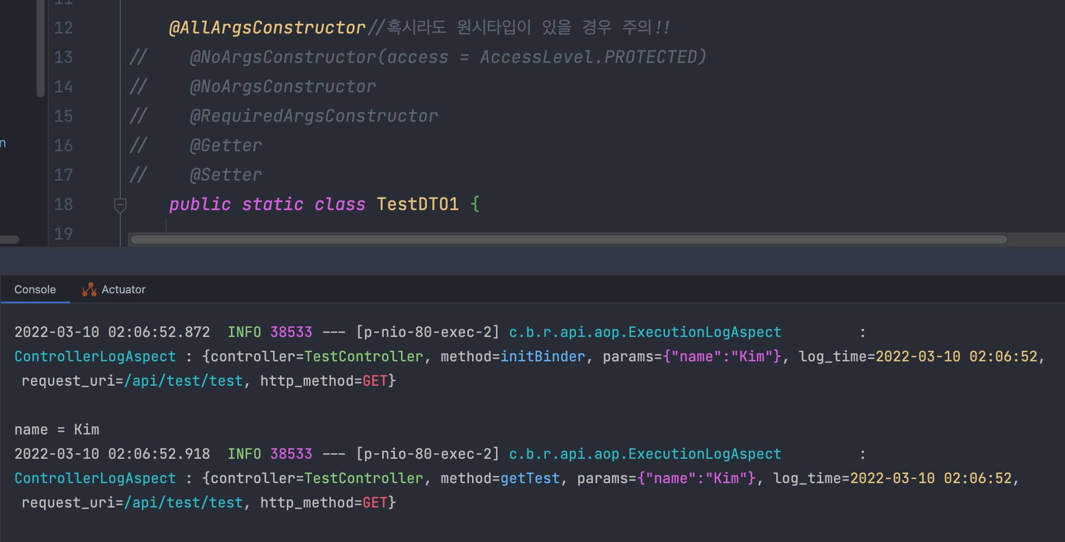 잘 작동한다. 추가로 Integer age에서 int age로 바꿨는데도 동작을 한다