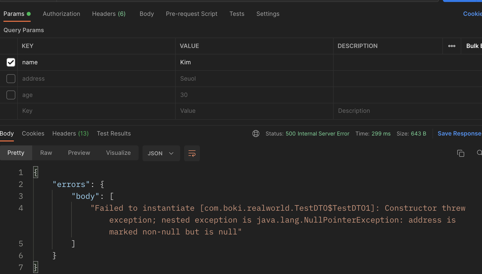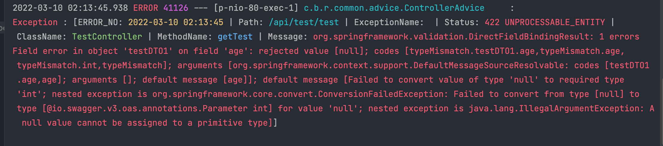자, 그렇기때문에 혹시라도 DTO필드값을 참조타입이 아니라 원시타입으로 한 경우는 에러가 날것이라고 예상을 할 수 있다