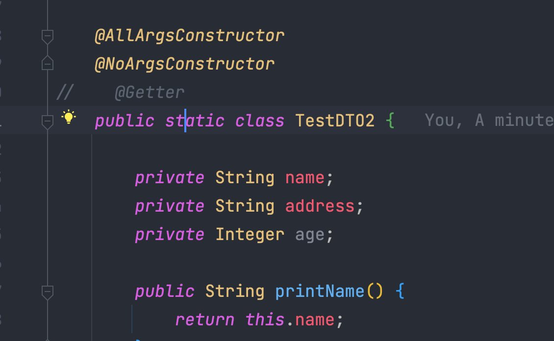 위에 @NoArgsConstructor처럼 address만 받는게 아니라, name이나 age를 받는 것을 확인 할 수 있었다