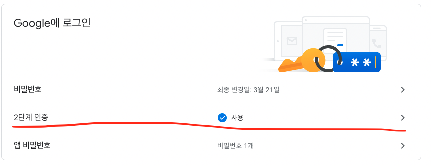 3) 2단계 인증을 활성화한다(앱 비밀번호를 받기 위함)
