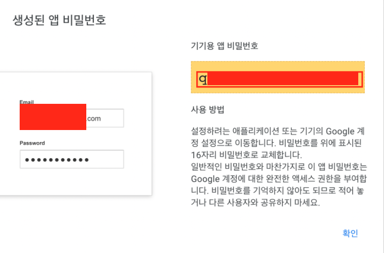 password: [-------] <구글 비밀번호=>앱 비밀번호로 변경>
